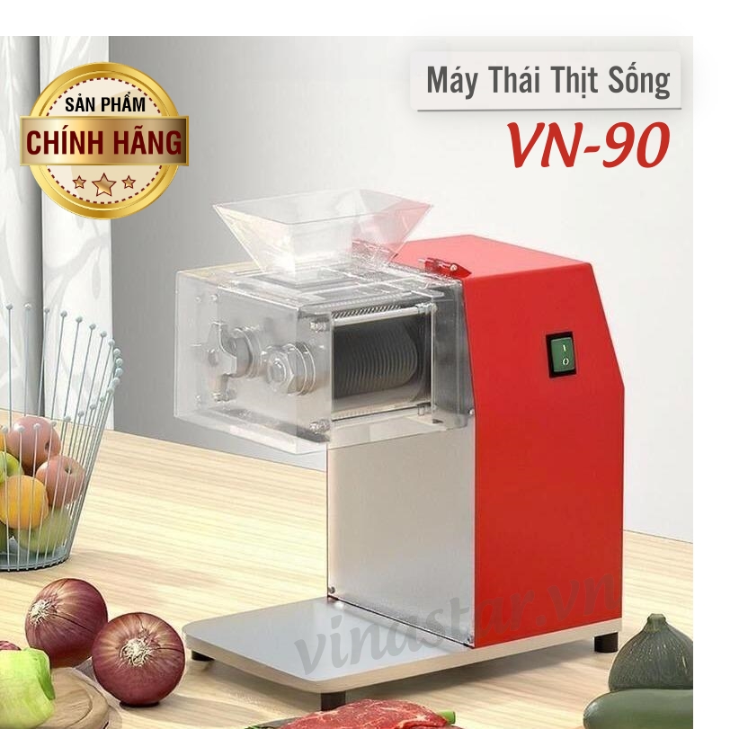 Máy thái thịt công nghiệp VN-90 cao cấp, là dòng máy thái thịt công suất cao có thể tháo rời thay thế bộ dao lắp. Sản phẩm này chuyên dùng cho các gia đình, nhà hàng, khách sạn, quán ăn bếp ăn công nghiệp, nhà hàng BBQ, quán lẩu nướng, doanh trại, căng-tin trường học hay bệnh viện.... Phục vụ nhu cầu thái lát thịt tươi sống với năng suất cao, đòi hỏi máy thật khoẻ khoắn, ổn định cũng như kết cấu gọn nhẹ, thẩm mĩ.