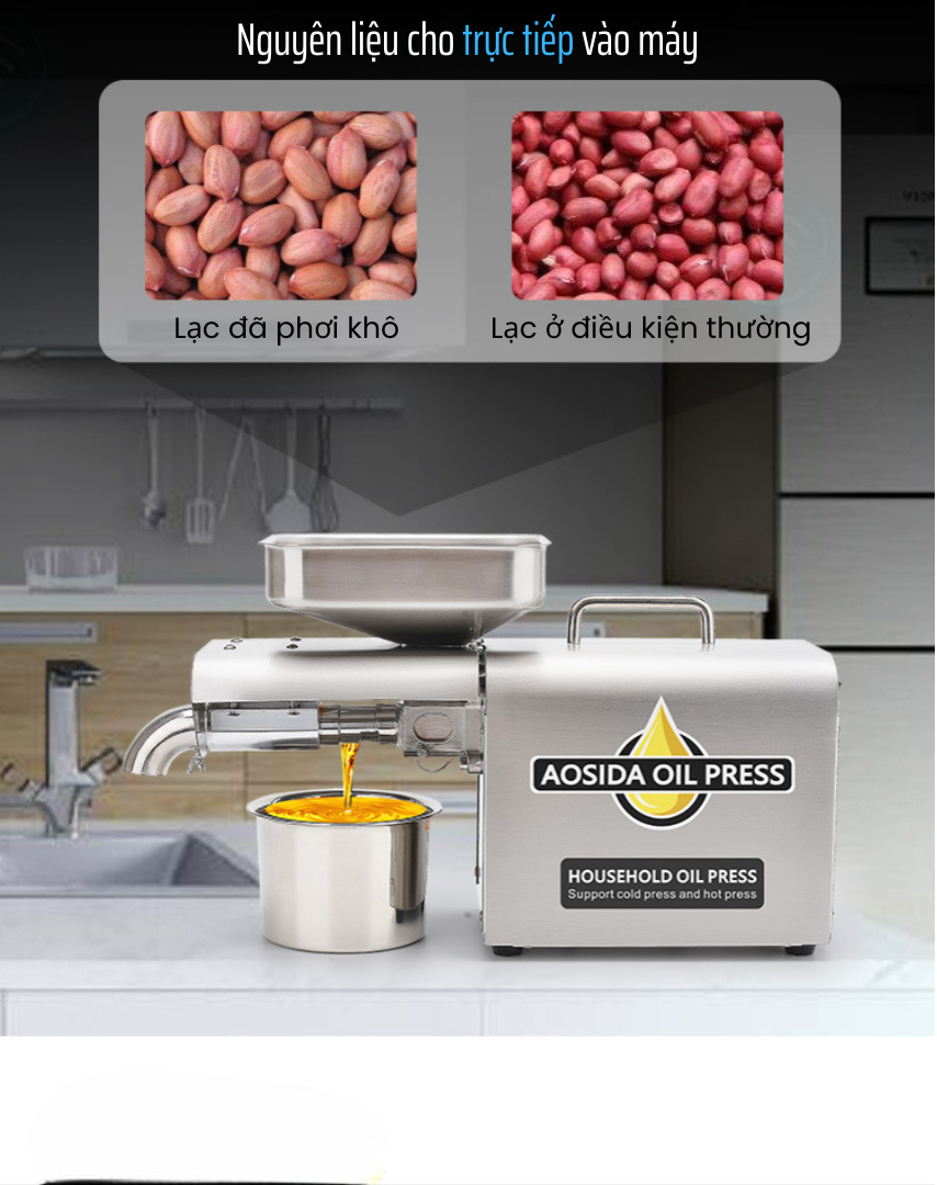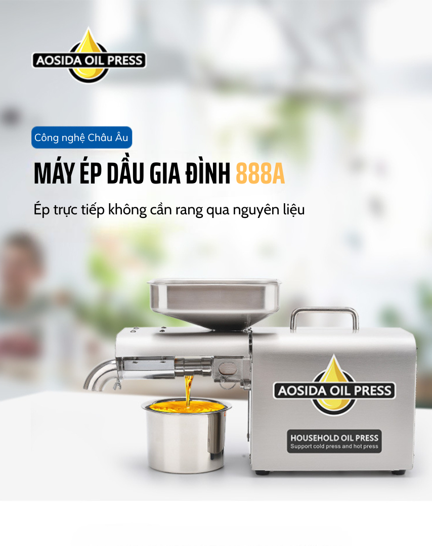 Trước tình trạng dầu ăn kém chất lượng tràn lan trên thị trường, việc tự ép dầu tại nhà đang trở thành xu hướng được nhiều gia đình lựa chọn để bảo vệ sức khỏe lâu dài. Và máy ép dầu AOSIDA 888A – thương hiệu Anh Quốc chính là giải pháp tuyệt vời giúp bạn chủ động làm ra những chai dầu thực vật sạch, không hóa chất, không tạp chất từ các loại hạt: lạc (đậu phộng), mè (vừng), óc chó, mắc ca, hạnh nhân, hướng dương, đậu nành, hạt bí…