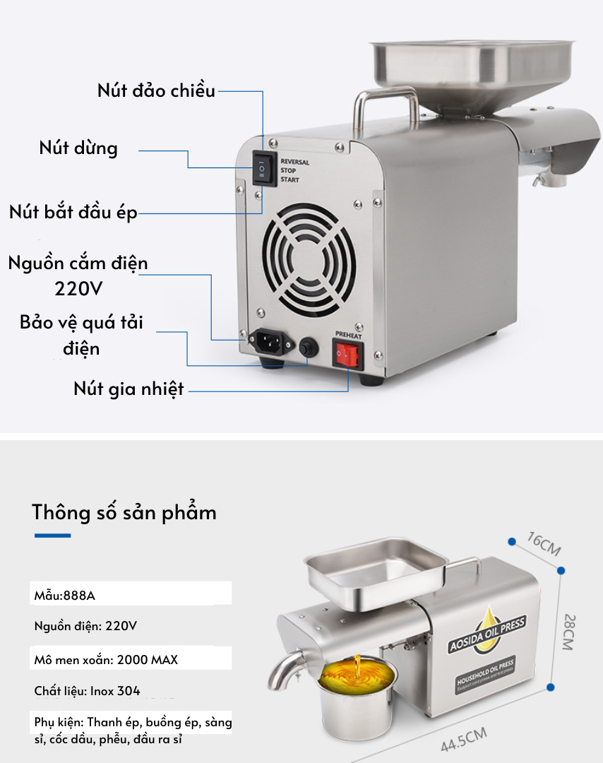 🌿 MÁY ÉP DẦU THỰC VẬT AOSIDA 888A – ÉP NHANH, ÉP KIỆT, DẦU NGUYÊN CHẤT 100% NGAY TẠI NHÀ 🛢️