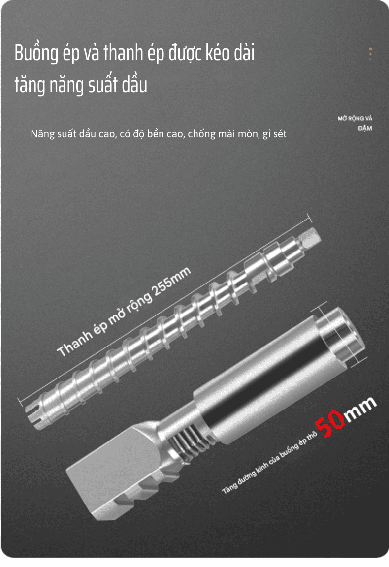 Tỷ lệ ép kiệt lên tới 99% nhờ trục xoắn tháp dài 210mm bằng Inox 316.