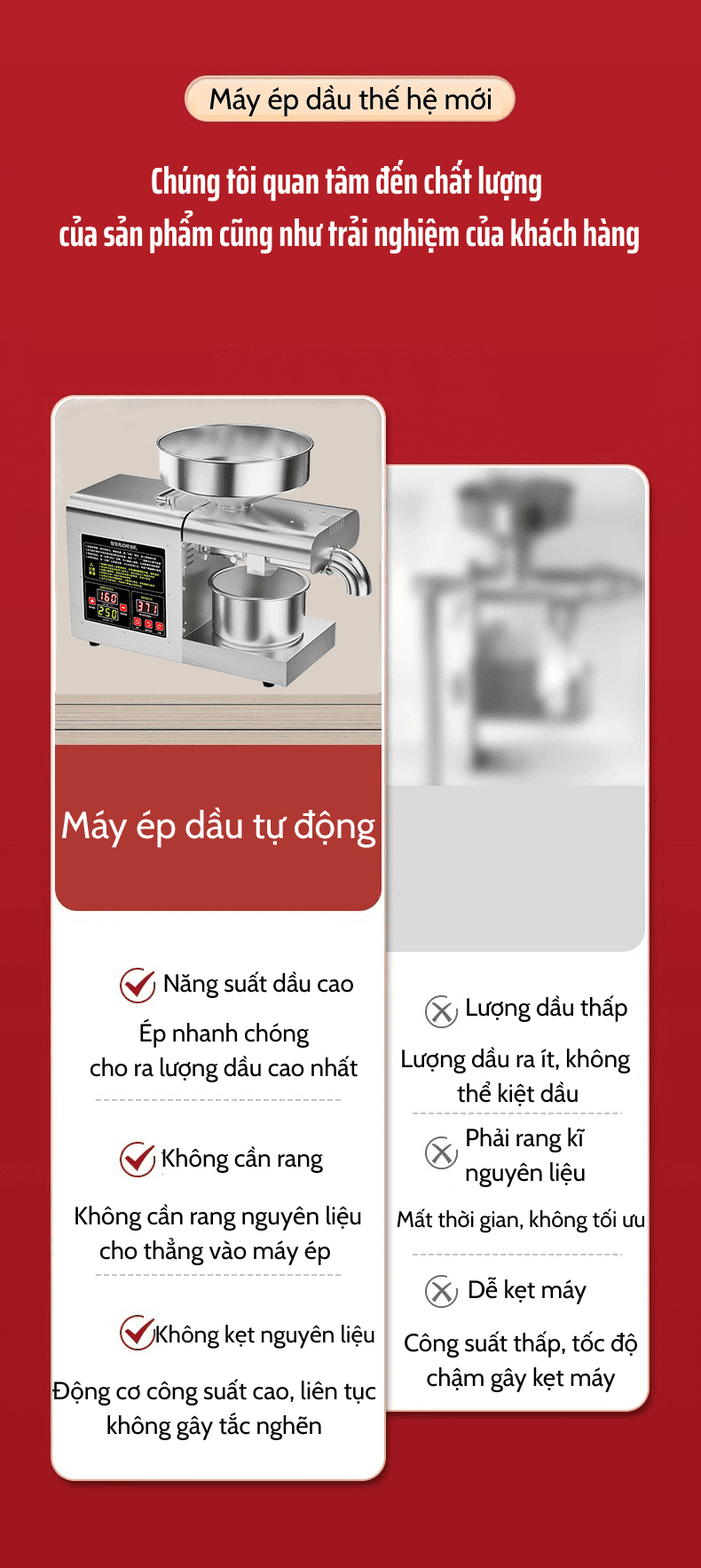 Trong bối cảnh thực phẩm công nghiệp ngày càng khó kiểm soát, nhiều hộ gia đình đã và đang tự trang bị máy ép dầu tại nhà như một cách chủ động bảo vệ sức khỏe và dinh dưỡng. Máy ép dầu TH-X8S chính là một trong những lựa chọn được đánh giá cao nhờ công suất mạnh mẽ, vật liệu cao cấp, vận hành ổn định và khả năng ép kiệt tối đa.