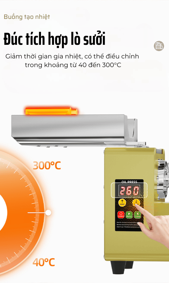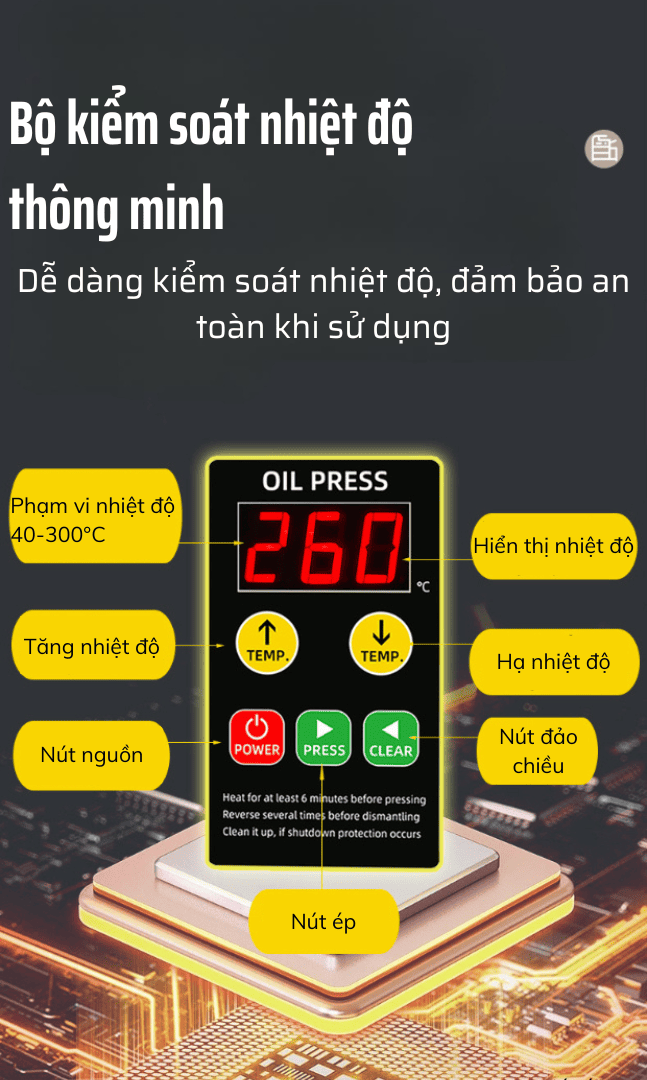 Cảm biến nhiệt độ thông minh, màn hình kỹ thuật số hiện đại – dễ điều chỉnh nhiệt độ phù hợp từng loại nguyên liệu.