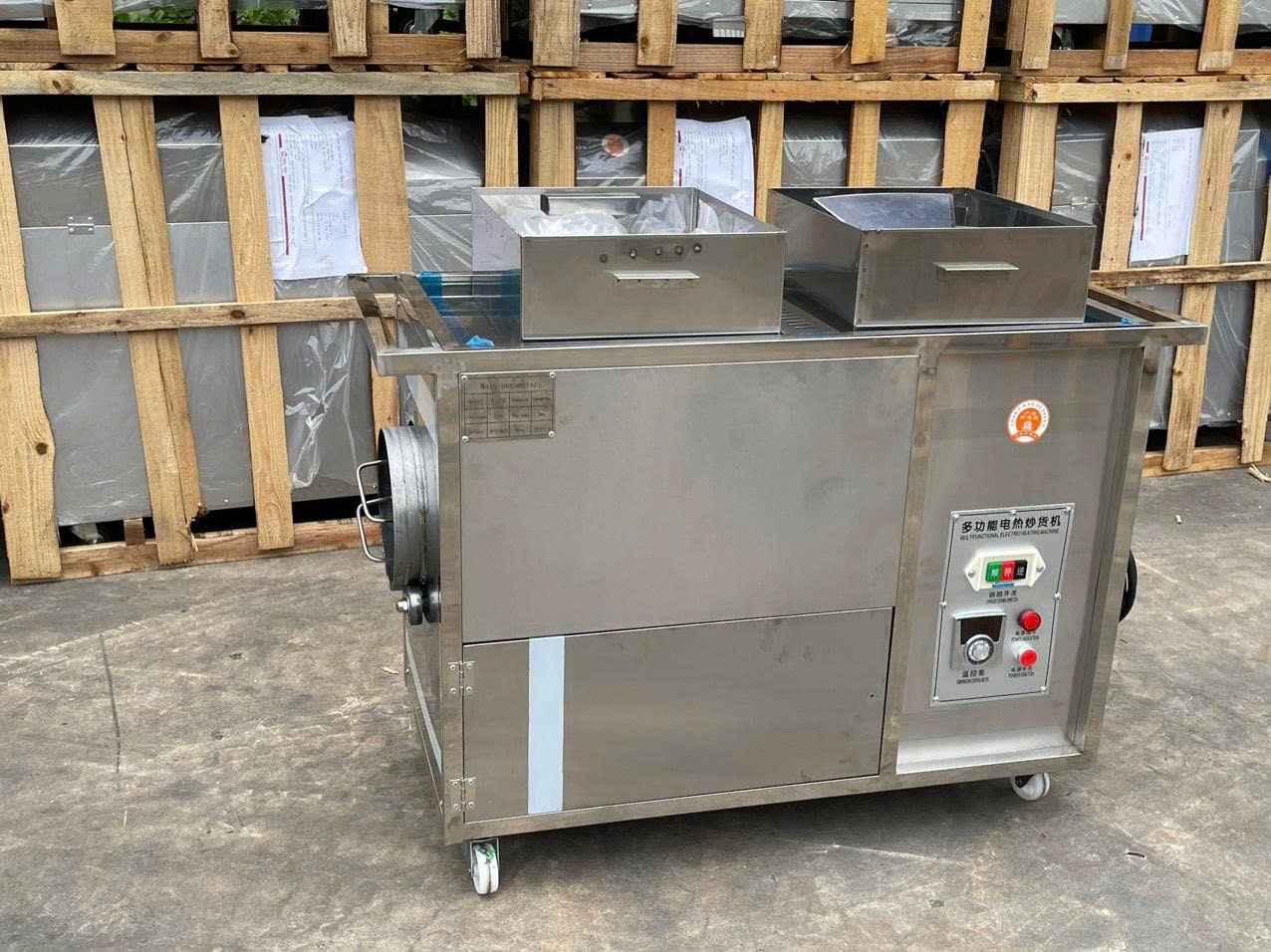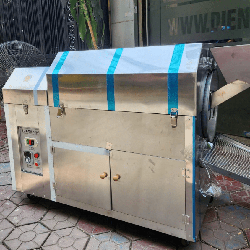Điểm nổi bật của dòng này chính là lồng rang kích thước lớn hơn, cho phép xử lý mẻ 7–10kg mà vẫn duy trì độ đảo đều cao. Lồng được làm từ Inox 304 tiêu chuẩn thực phẩm, hoàn toàn không gỉ, không ám mùi, chịu nhiệt cực tốt và phù hợp với mọi loại hạt từ nhỏ đến lớn.