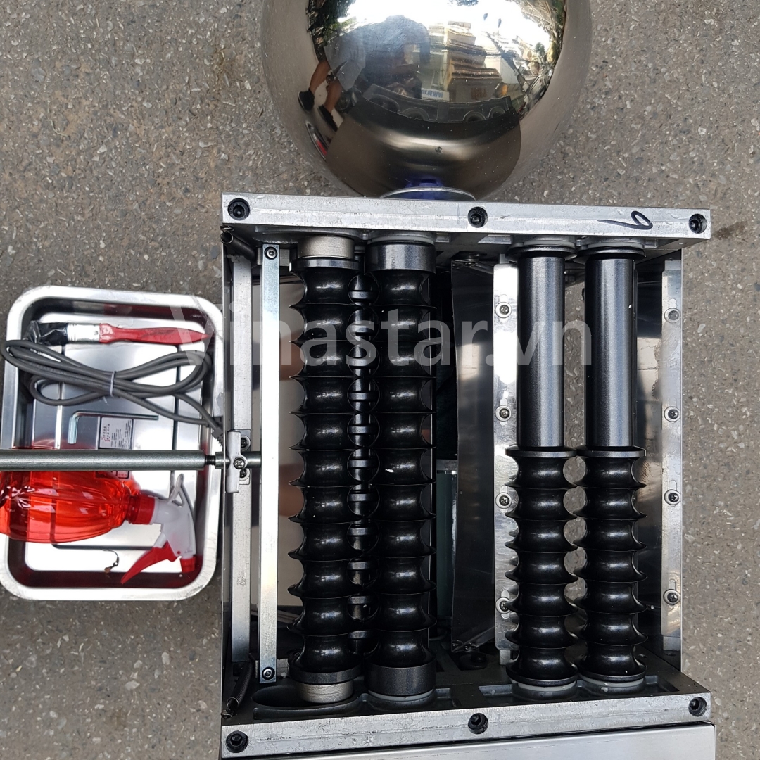- Các bộ phận cấu tạo của máy chủ yếu được chế tạo từ Inox 304 chất lượng cao, không sợ bị gỉ sét và chống bám bụi. Đảm bảo nhu cầu về vệ sinh an toàn thực phẩm.
