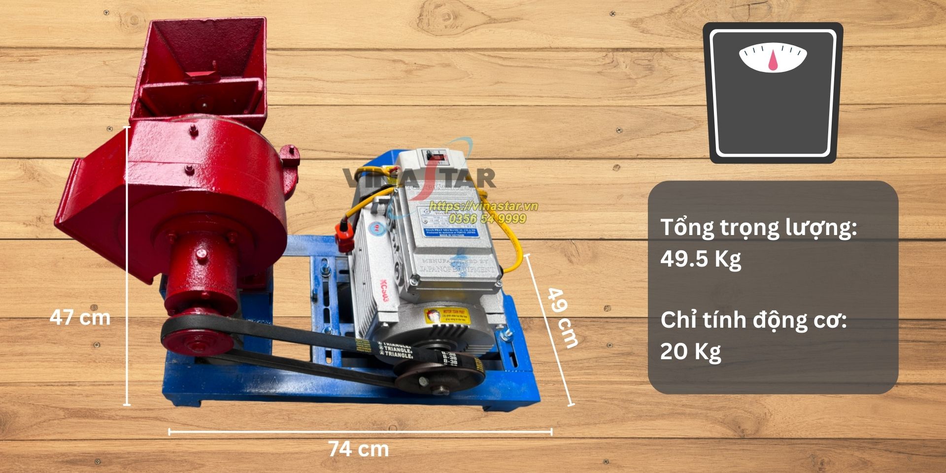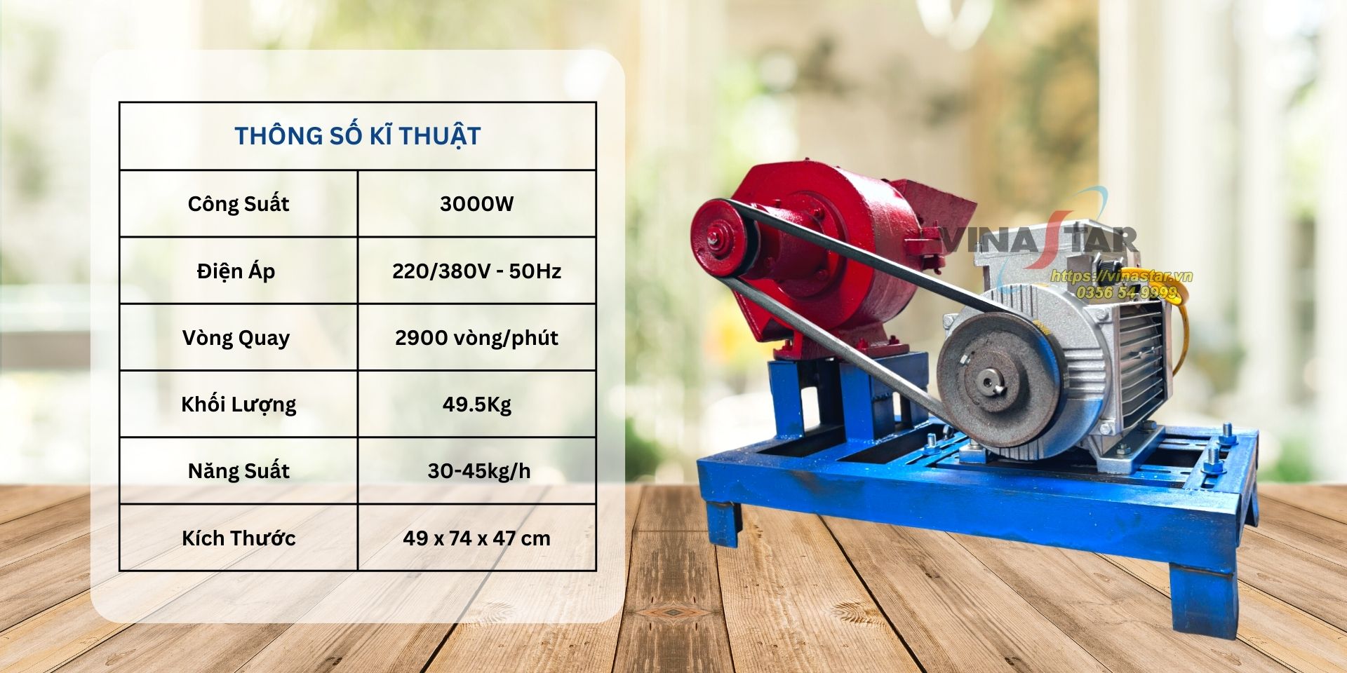 – Máy chạy động cơ 3000W, nguồn điện 220-380V, cho năng suất 30-45kg/h.